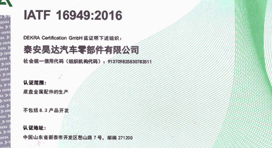 泰安昊達(dá)汽車(chē)零部件有限公司位于新泰市經(jīng)濟(jì)開(kāi)發(fā)區(qū)嶅山路7號(hào),公司成立于2011年,是一家生產(chǎn)中、重型卡車(chē)底盤(pán)鑄鍛件、焊接件、發(fā)動(dòng)機(jī)配件的專(zhuān)業(yè)廠家,廠區(qū)占地面積101畝,2018年建設(shè)年產(chǎn)300萬(wàn)件汽車(chē)零部件項(xiàng)目,項(xiàng)目總投資3.16億元,總建筑面積3.6萬(wàn)平方米,是新泰市汽車(chē)裝配產(chǎn)業(yè)鏈的重點(diǎn)項(xiàng)目、2018年、2019年泰安重點(diǎn)項(xiàng)目,現(xiàn)已建設(shè)完畢,于2019年1月1日正式投入使用,設(shè)備新上覆膜砂自動(dòng)化鑄造生產(chǎn)線1條、熱模鍛生產(chǎn)線6條、自動(dòng)化焊接生產(chǎn)線10條、CNC加工設(shè)備200余臺(tái)套。 主要產(chǎn)品:中、重卡車(chē)底盤(pán)配件、轉(zhuǎn)向配件、中后橋氣室支架總成、中后橋配件、前橋轉(zhuǎn)向節(jié)臂、焊接配件、發(fā)動(dòng)機(jī)配件。產(chǎn)品主要銷(xiāo)往中國(guó)重汽集團(tuán)、市場(chǎng)份額約50%,位居行業(yè)鑄件產(chǎn)品前三。 公司擁有IATF16949:2016國(guó)際標(biāo)準(zhǔn)質(zhì)量管理體系認(rèn)證,擁有實(shí) ......